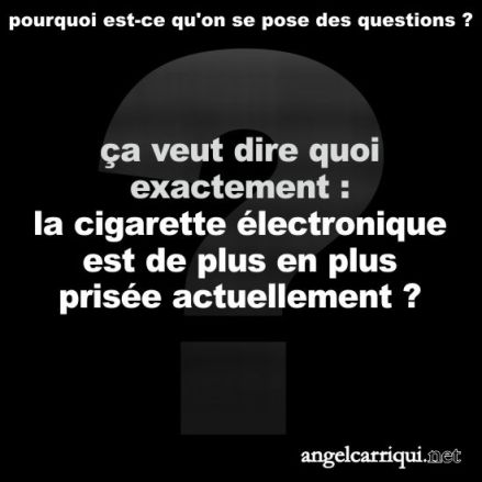 Cette entrée, publiée dans questions, est taguée Angel Carriqui, cigarette électronique, humour, pensées, prise, question, satirique, tabac. Bookmarquez ce permalien.