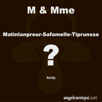 Cette entrée, publiée dans M & Mme, est taguée Angel Carriqui, bla bla blague, calembour, devinette, humour, M & Mme, ont un fils, ont une fille. Bookmarquez ce permalien.