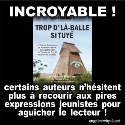 Cette entrée, publiée dans incroyable, est taguée Angel Carriqui, besançon, doubs, franche-comté, humour, livres, parodie, satirique, tuyé. Bookmarquez ce permalien.