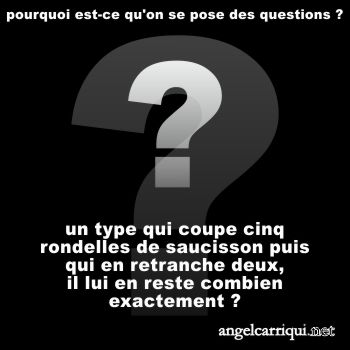 un type qui coupe cinq rondelles de saucisson puis qui en retranche deux, il lui en reste