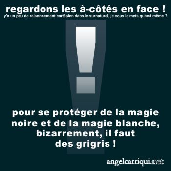 pour se protéger de la magie noire et de la magie blanche, bizarrement, il faut des grigris !