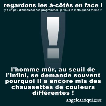 l’homme mûr, au seuil de l’infini, se demande souvent pourquoi il a encore mis des chaussettes de couleurs différentes !