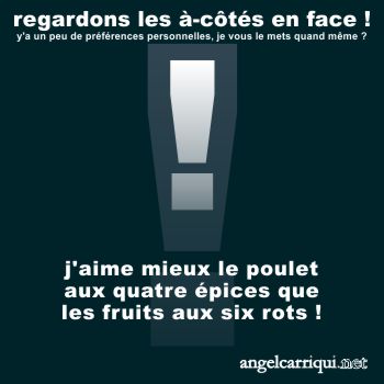 j’aime mieux le poulet aux quatre épices que les fruits aux six rots !