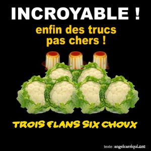 INCROYABLE : …enfin des trucs pas chers : trois flans six choux…