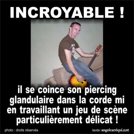 Poster un commentaire Publié dans l'âme des poètes Tagué Angel Carriqui, concert, guitare, humour, musique, parodie, pensées, piercing, satirique