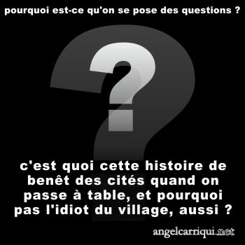 c’est quoi cette histoire de benêt des cités quand on passe à table, et pourquoi pas l’idiot du village, aussi ?