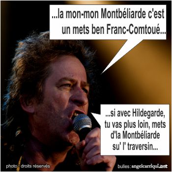 …la mon-mon Montbéliarde c’est un mets ben Franc-Comtoué, si avec Hildegarde, tu vas plus loin, mets d’la Montbéliarde su’ l’ traversin…