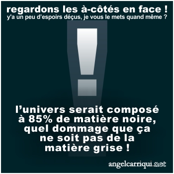 l’univers serait composé à 85% de matière noire, quel dommage que ça ne soit pas de la matière grise !